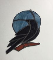Created in genuine stained glass using the copper foil method & finished in a black patina for a quality piece of glass art to last throughout the years!