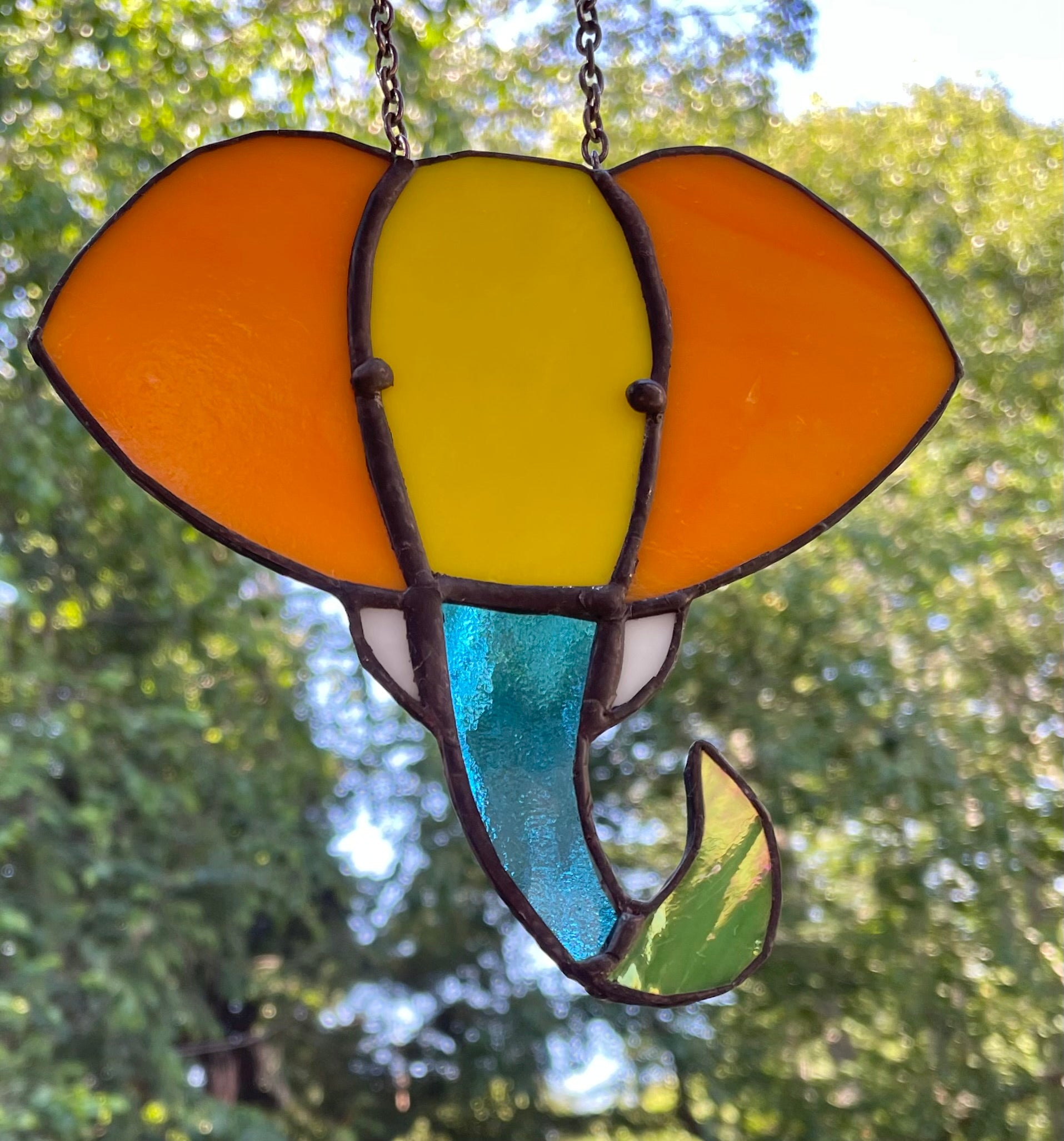 Crafted in genuine stained glass using the copper foil method and finished in a black patina for a quality piece of glass art to last throughout the years!