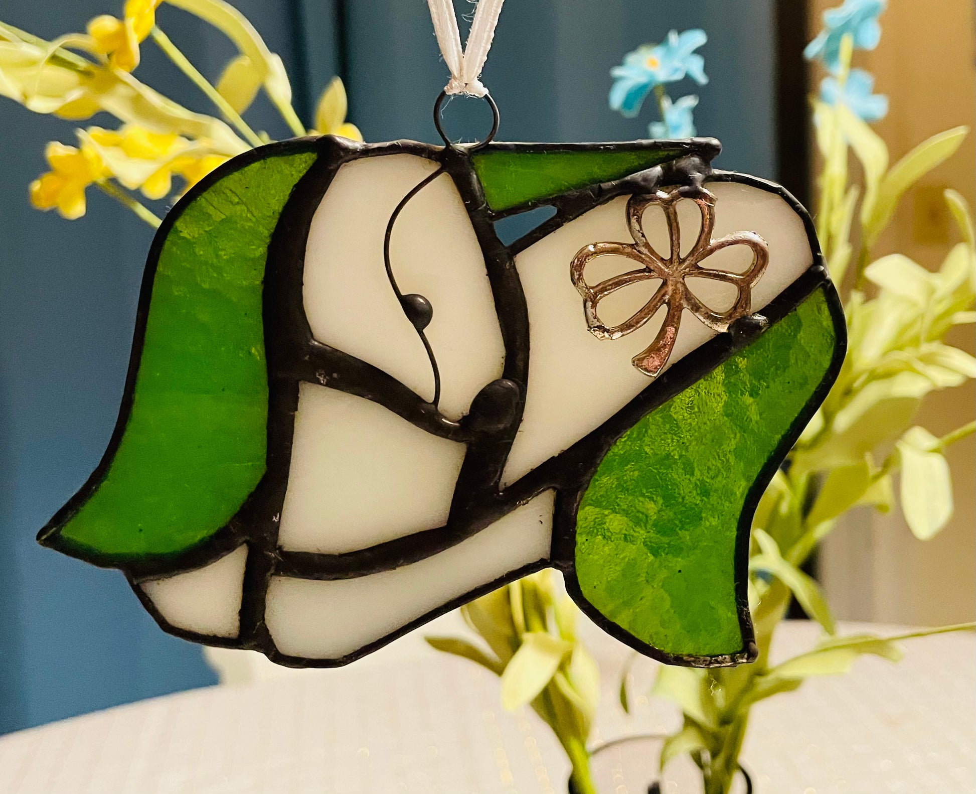 Crafted in genuine stained glass using the copper foil method & finished in a black patina for a quality piece of glass art to last throughout the years!
