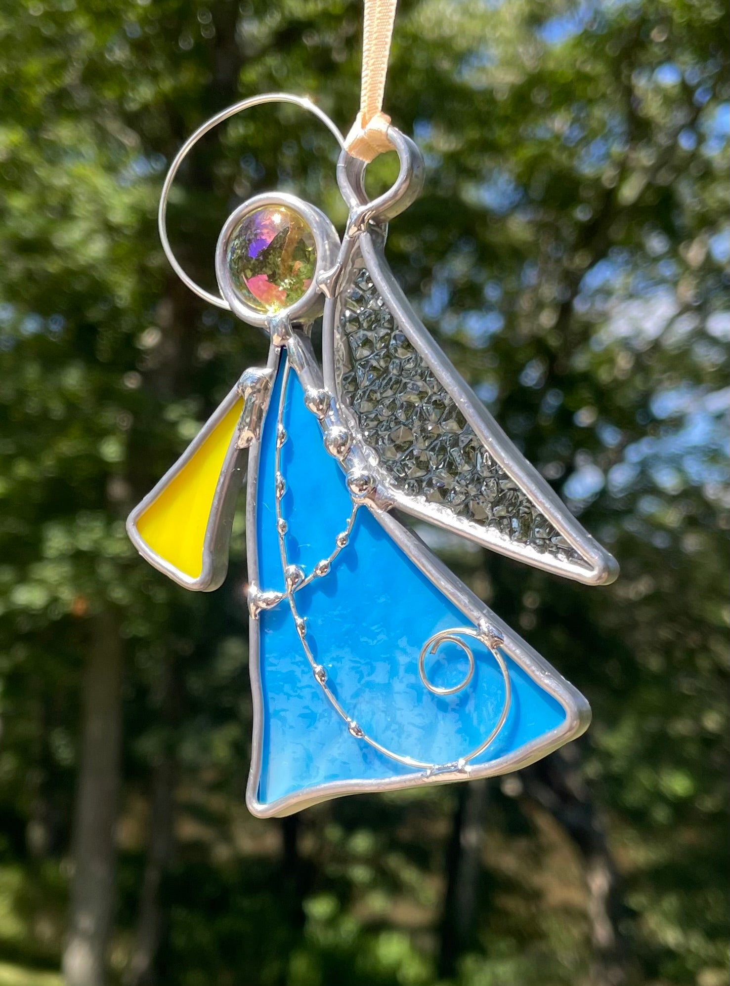 There is so much cuteness in this little angel Suncatcher with a trumpet! A festive addition to your home decor!