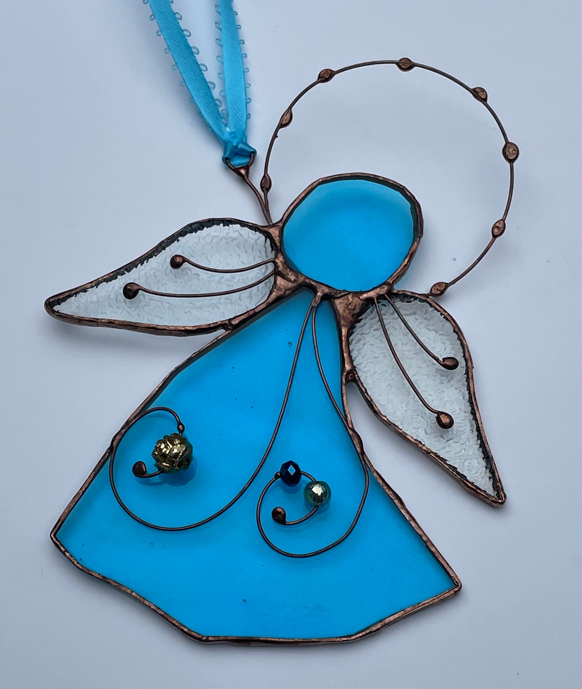 Created in genuine stained glass using the copper foil method & finished in a copper patina for a quality piece of glass art to last throughout the years!