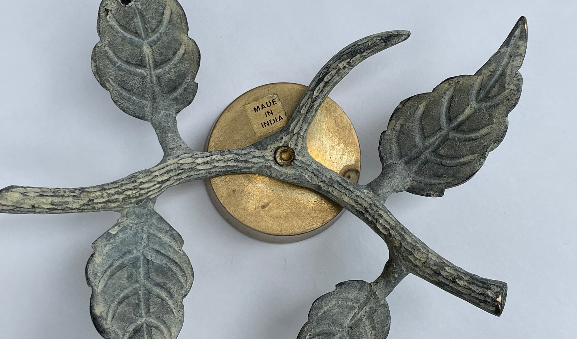 This brass candle holder set was made in India and holds tea light size candles. This set will add a vintage flair to your home decor!