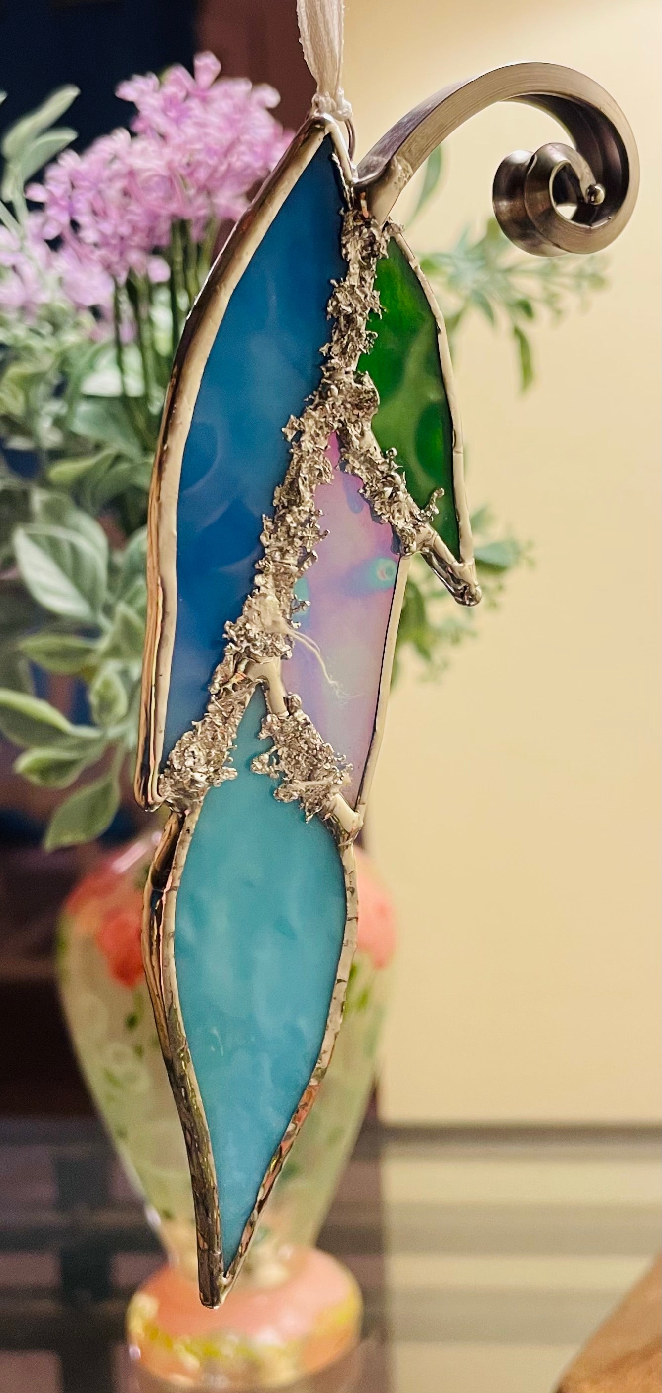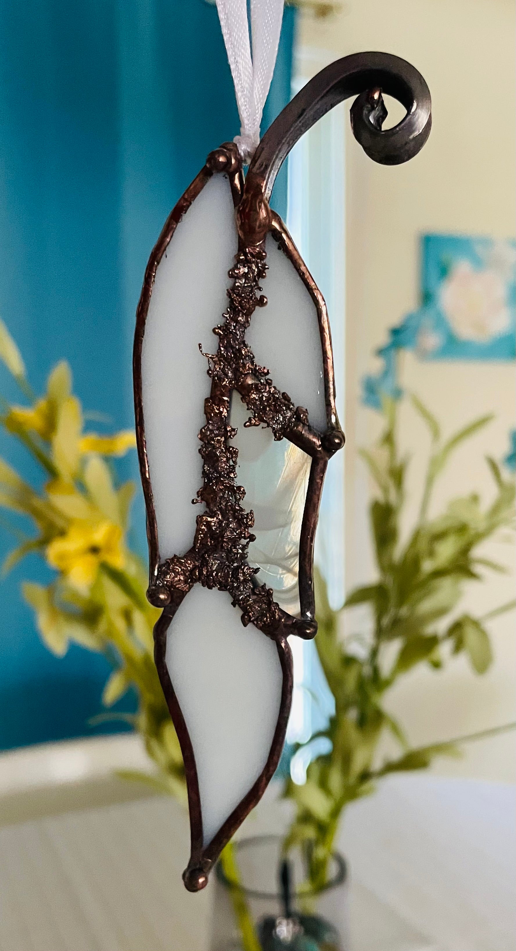 Created in genuine stained glass using the copper foil method and finished in a copper patina for a quality piece of glass art to last throughout the years!