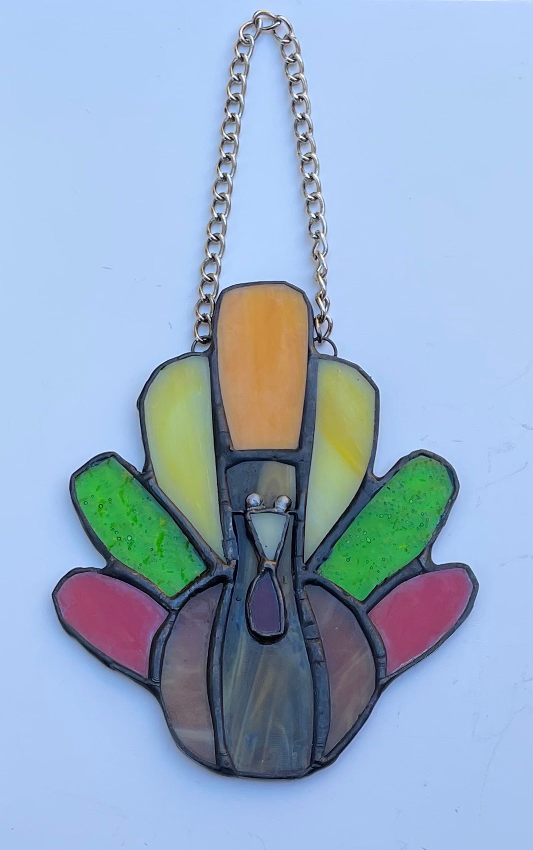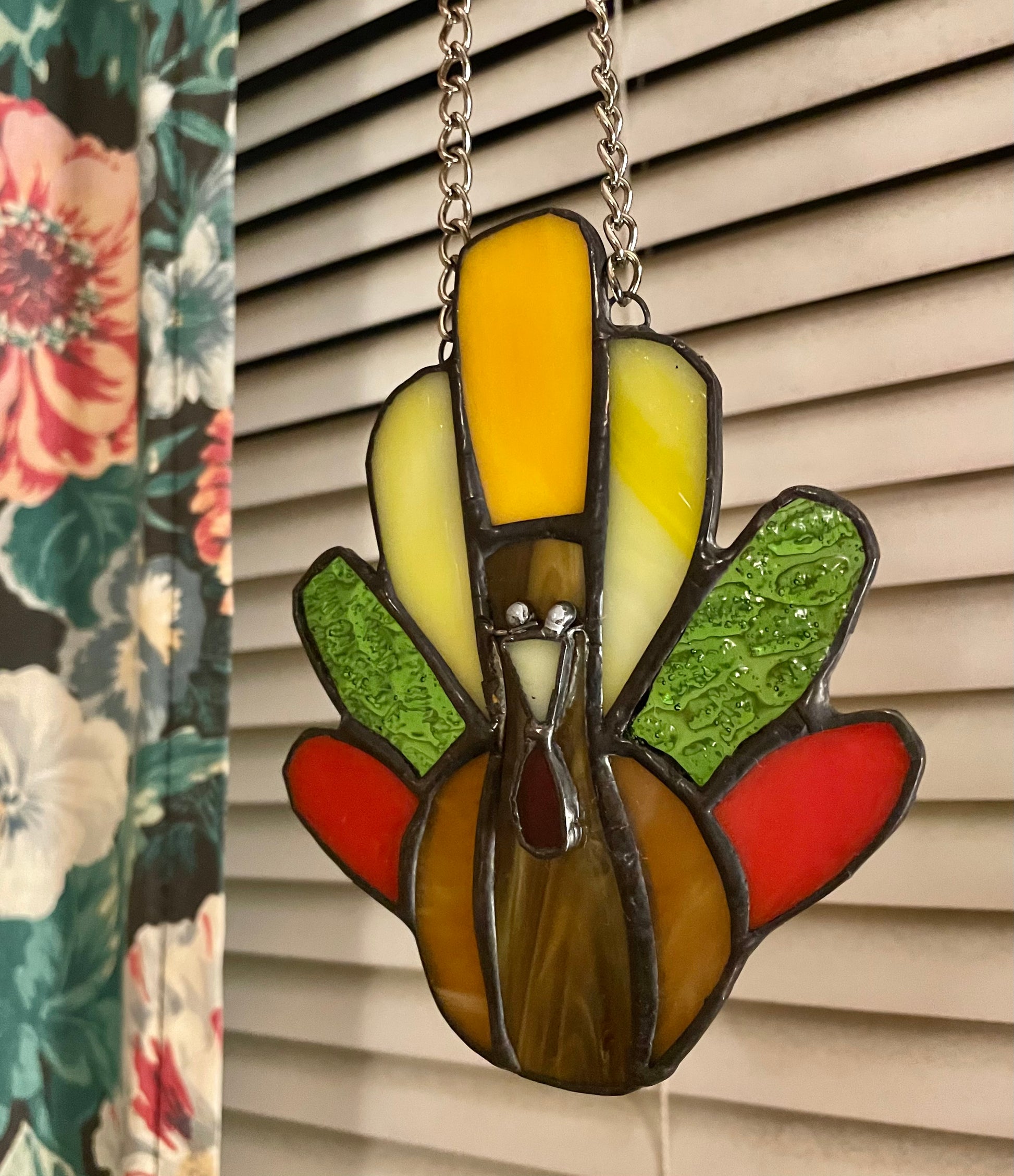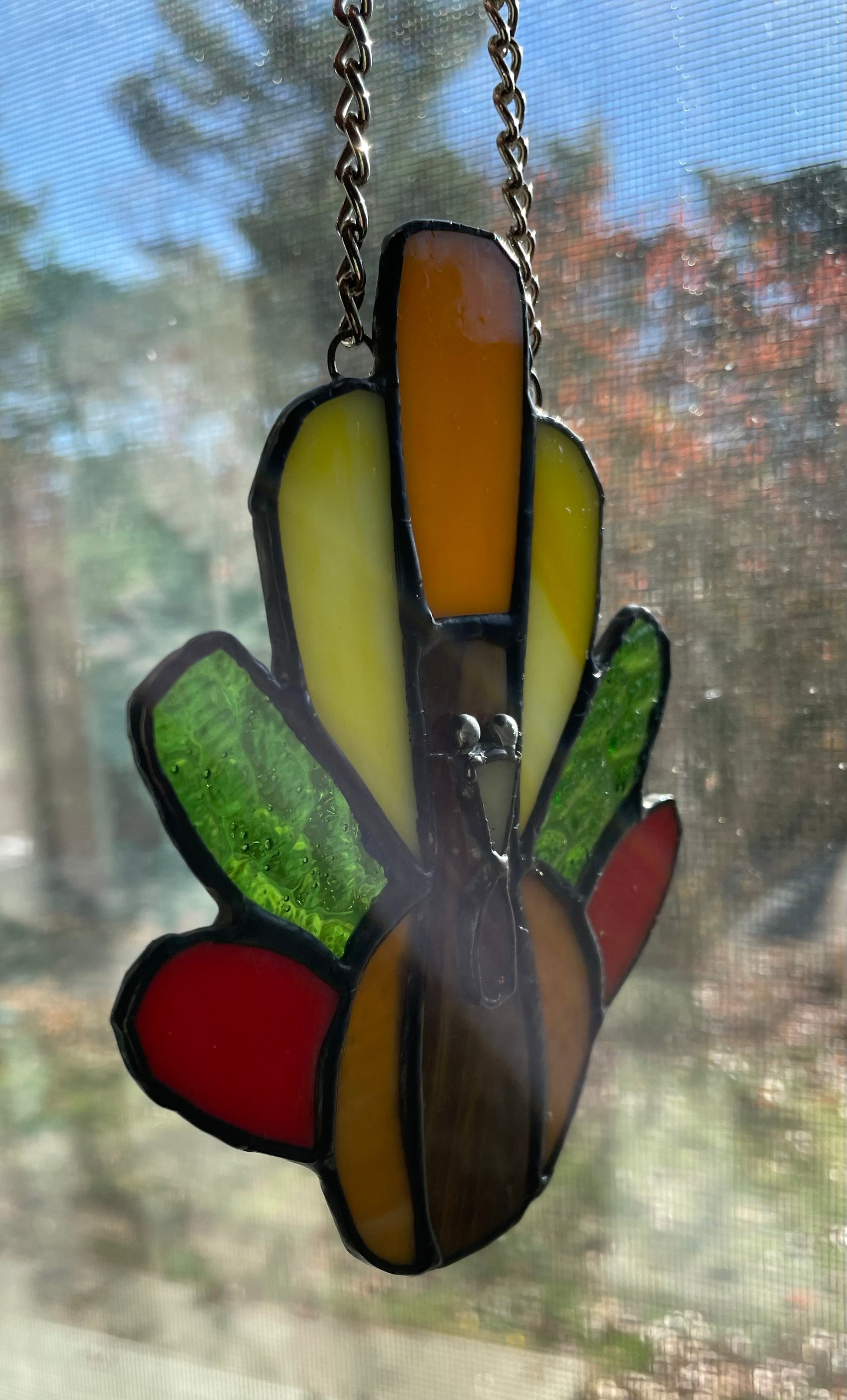 Created in genuine stained glass using the copper foil method and finished in a black patina for a quality piece of glass art to last throughout the years!