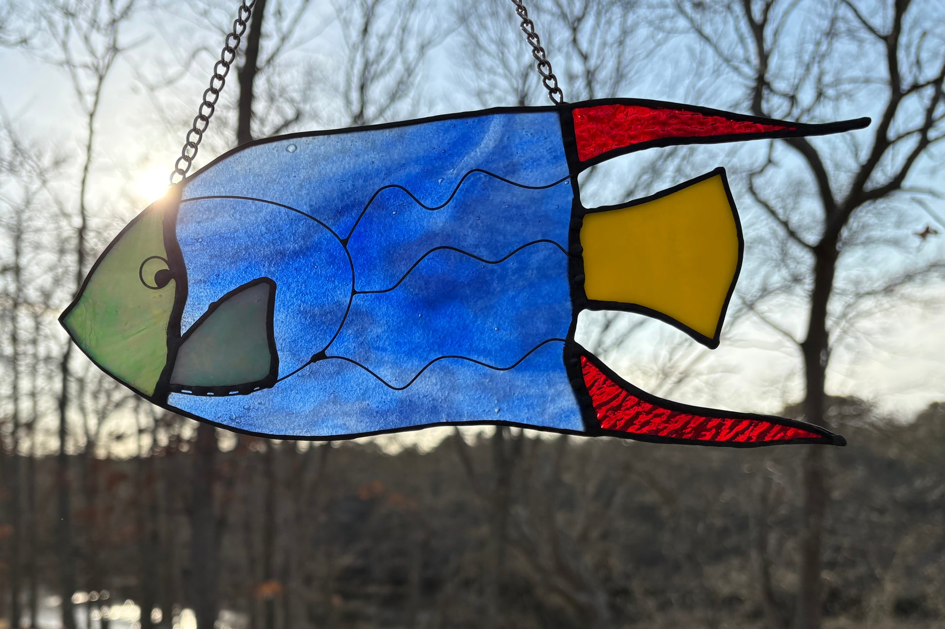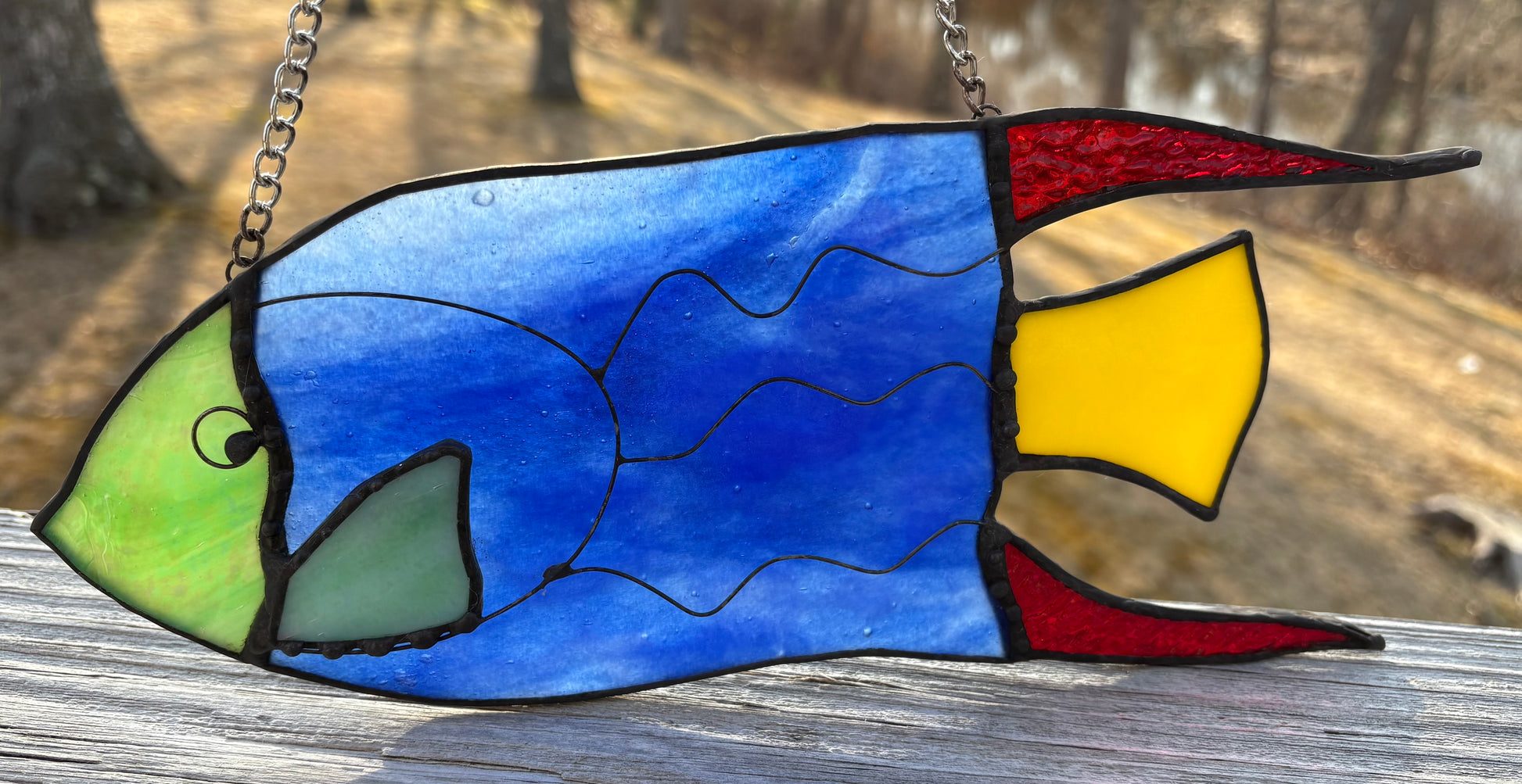 Created in genuine stained glass using the copper foil method & finished in a black patina for a quality piece of glass art to last throughout the years!