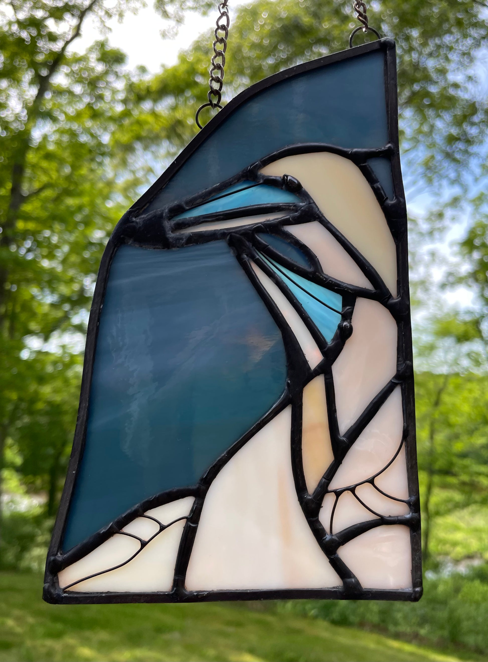 Created in genuine stained glass using the copper foil method & framed in metal came. Finished in a black patina for a quality piece of glass art to last throughout the years!