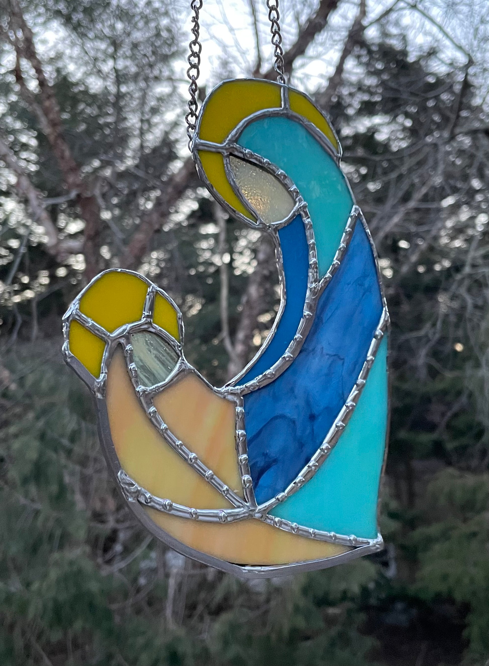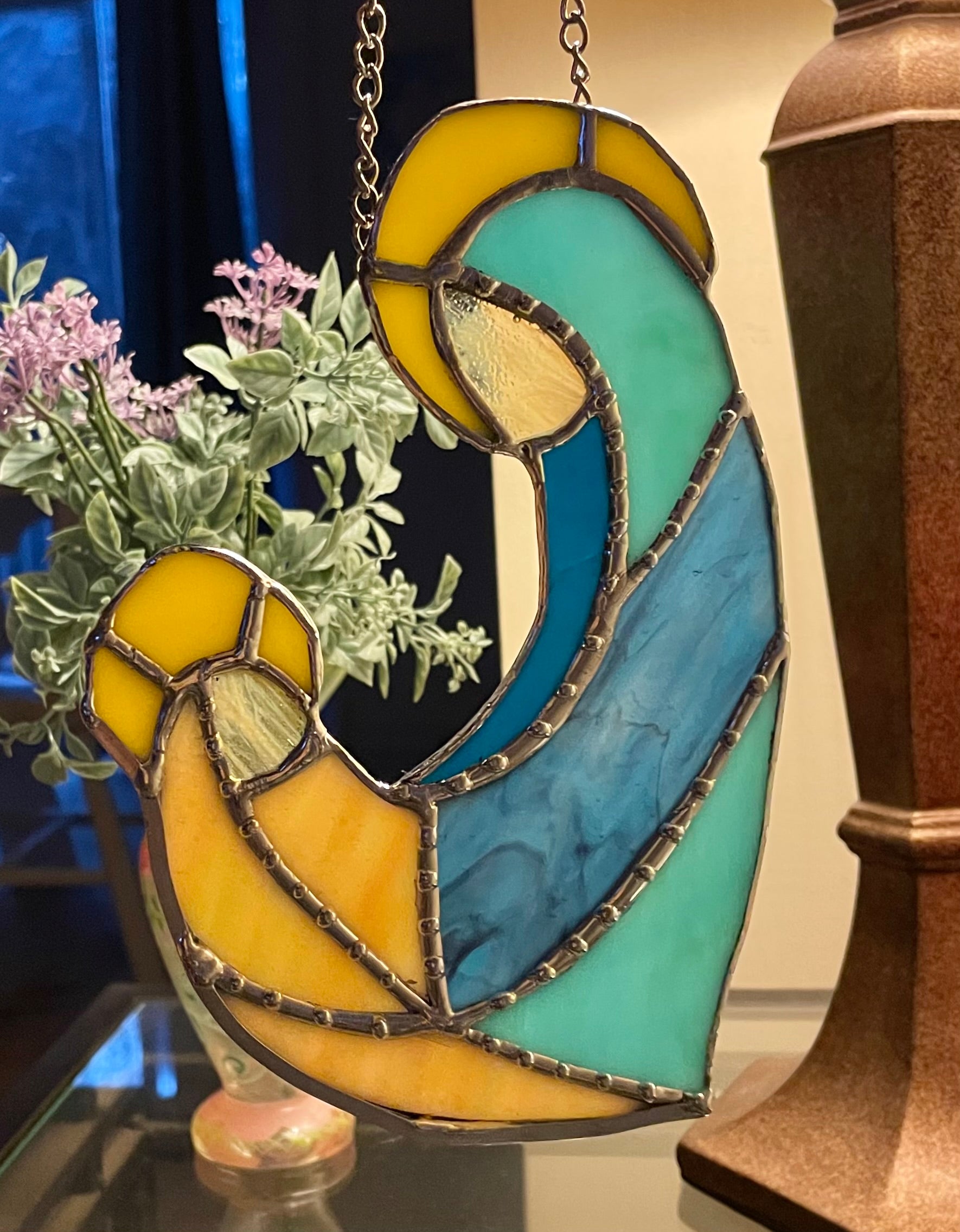 Created in genuine stained glass using the copper foil method and finished in a black patina for a quality piece of glass art to last throughout the years!