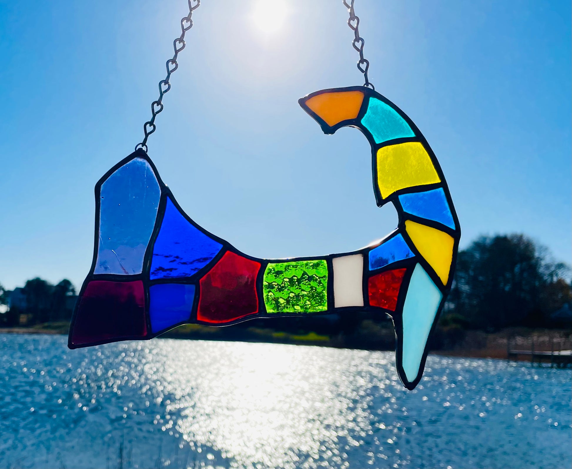 Created in genuine stained glass using the copper foil method & wrapped in a metal cape for a quality piece of glass art to last throughout the years!