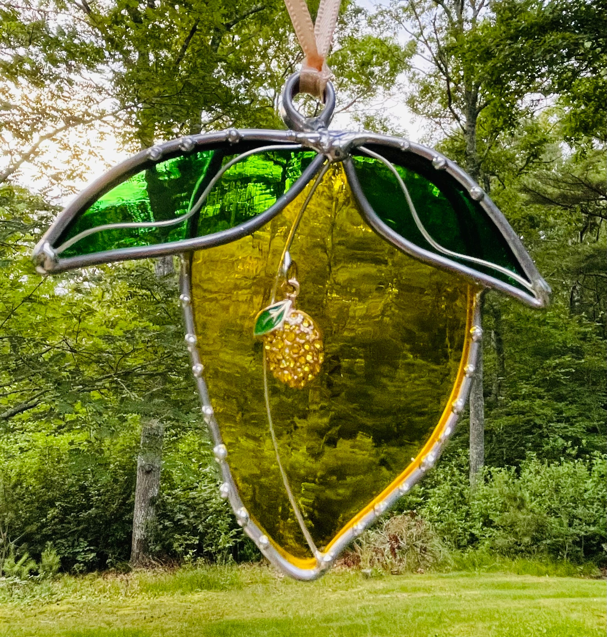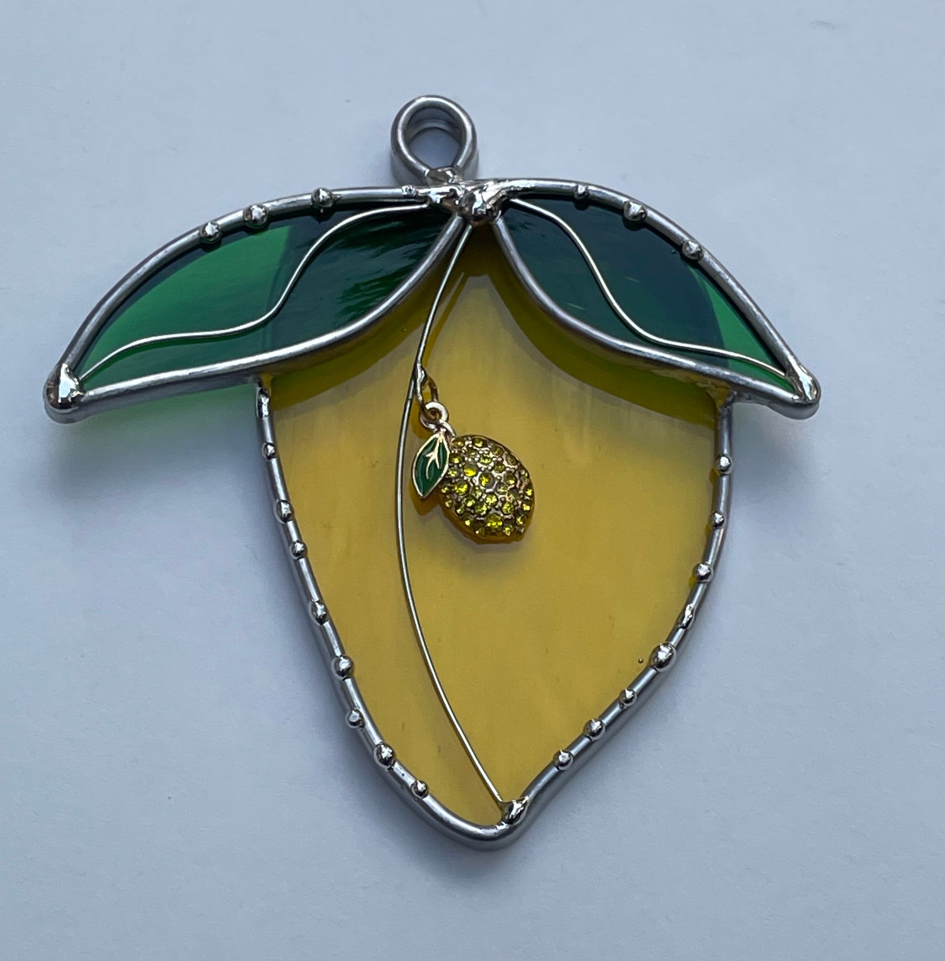 A fun citrus suncatcher! This lemon would be perfect for your kitchen window! Lemon charm adds so much flair!