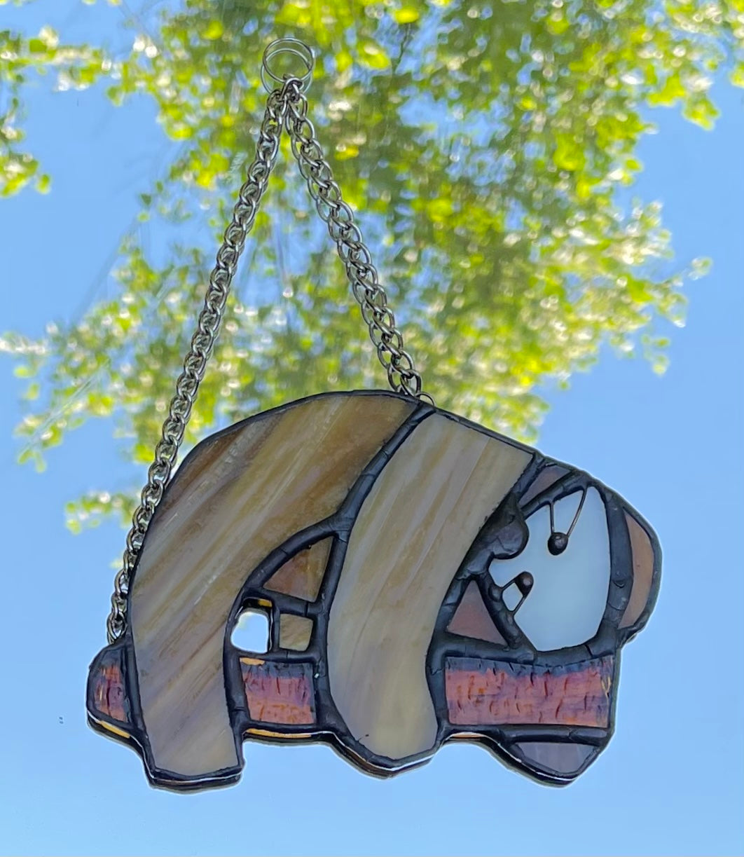 Created in genuine stained glass using the copper foil method and finished in a black patina for a quality piece of glass art to last throughout the years!
