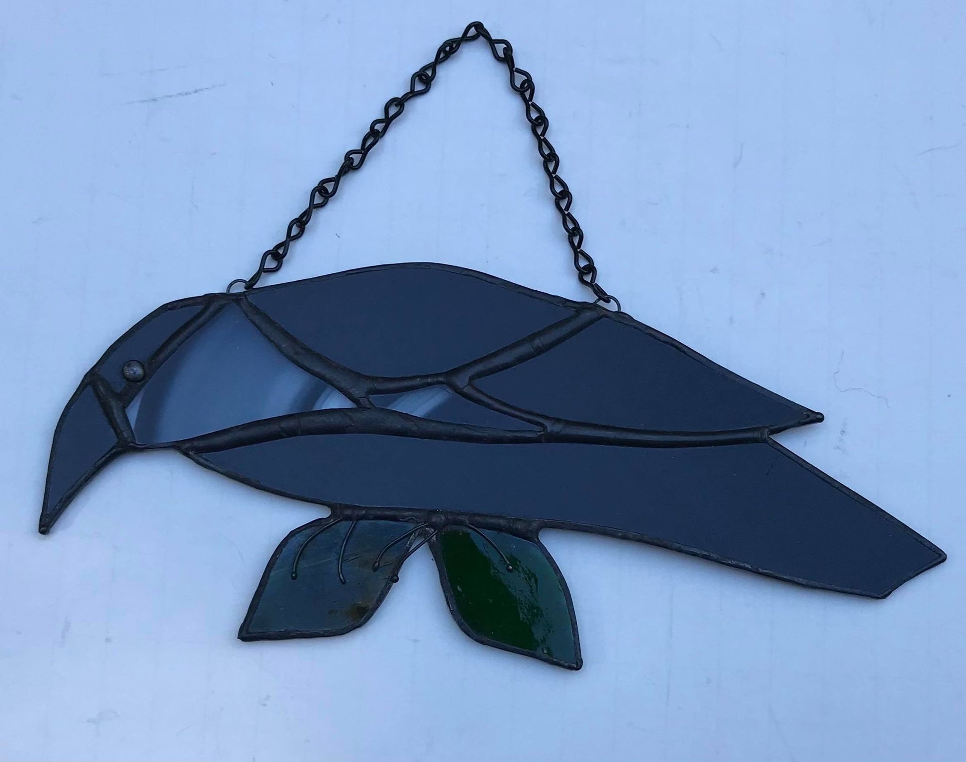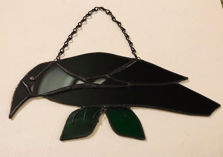 Created in genuine stained glass using the copper foil method & finished in a black patina for a quality piece of glass art to last throughout the years!