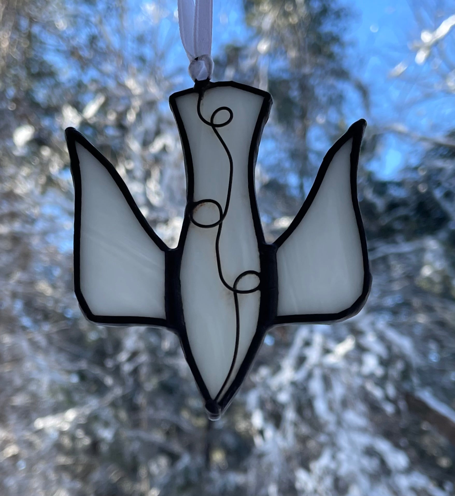 Created in genuine stained glass using the copper foil method & finished in a black patina for a quality piece of glass art to last throughout the years!